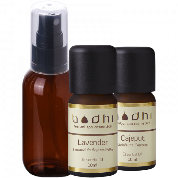 Zmiešajte vo fľaške s rozprašovačom 10 kvapiek esenciálneho oleja Kajeput, 10 kvapiek esenciálneho oleja Levanduľa so 40 ml hydrolátu rozmarínu (rozmarínová voda). Fľašku pred použitím pretrepte.