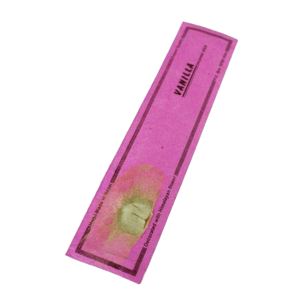 Veľmi príjemné, ručne šúľané 100 % prírodné vonné tyčinky s vôňou vanilky. Vonné tyčinky sú vyrobené bez chemických prísad a iných umelých aróm. Himalájske vonné tyčinky sú zabalené v krásnom ručne vyrábanom papieri, dekorovanom pravým vysušeným himalájskym kvetom. Jedna tyčinka horí v priemere až 40 minút. V balení sa nachádza 15 ks.