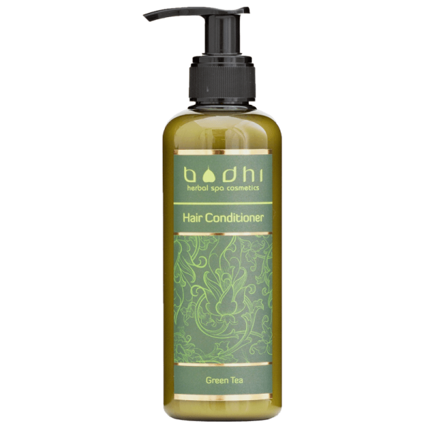 Prírodný kondicionér s jemnou a osviežujúcou vôňou zeleného čaju, preniká hlboko do vlasového vlákna, kde vytvára prirodzenú ochrannú vrstvu, ktorá chráni vlas pred nepriaznivými vplyvmi vonkajšieho prostredia. Zmes rastlinného extraktu z ginko biloba v kombinácii s pro-vitamínom B5, pôsobí blahodarne na podráždenú a citlivú vlasovú pokožku. Kondicionér Zelený čaj zanechá vlasy hladké, pružné a dodá im prirodzený lesk. Vhodný na všetky typy vlasov.
